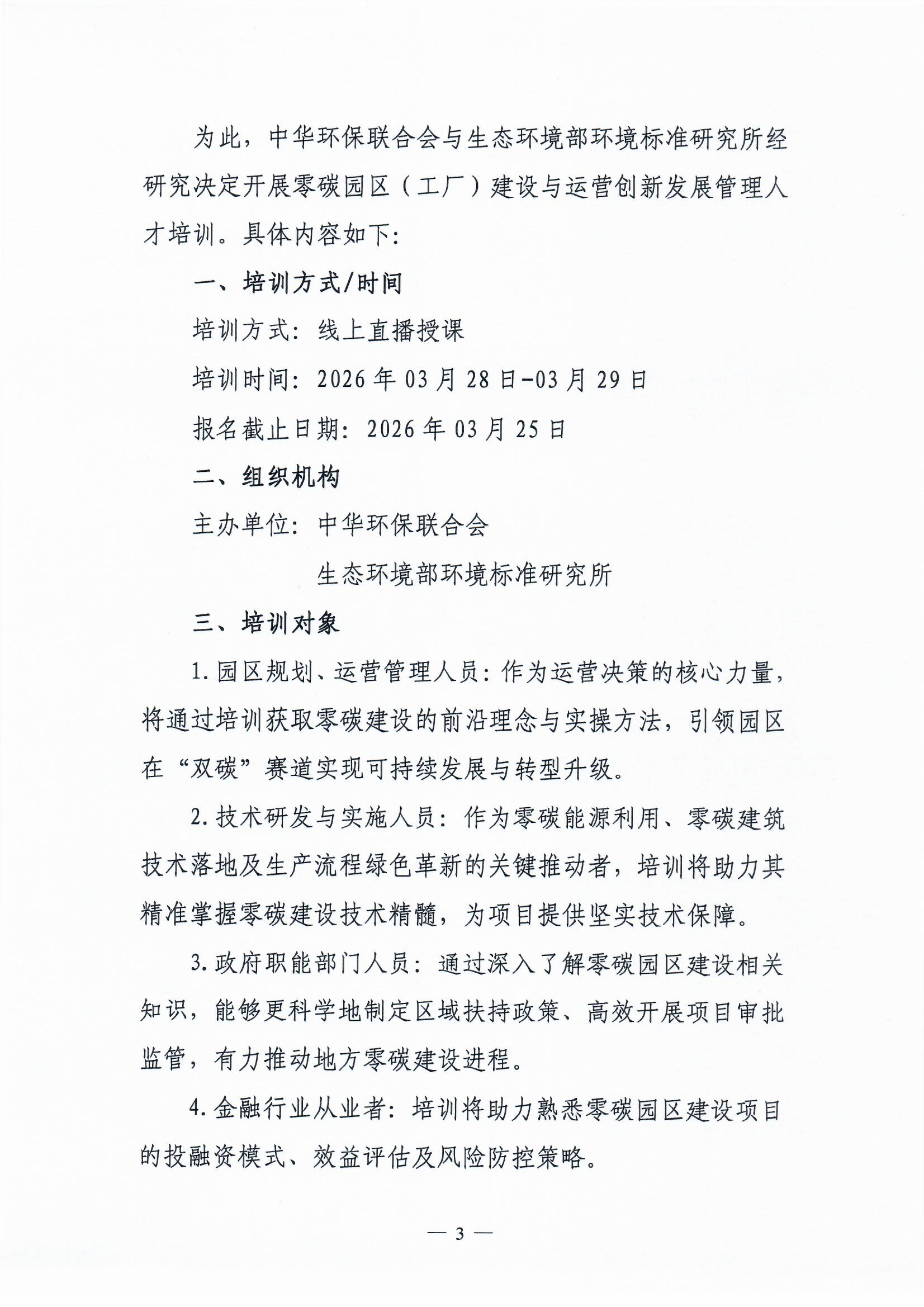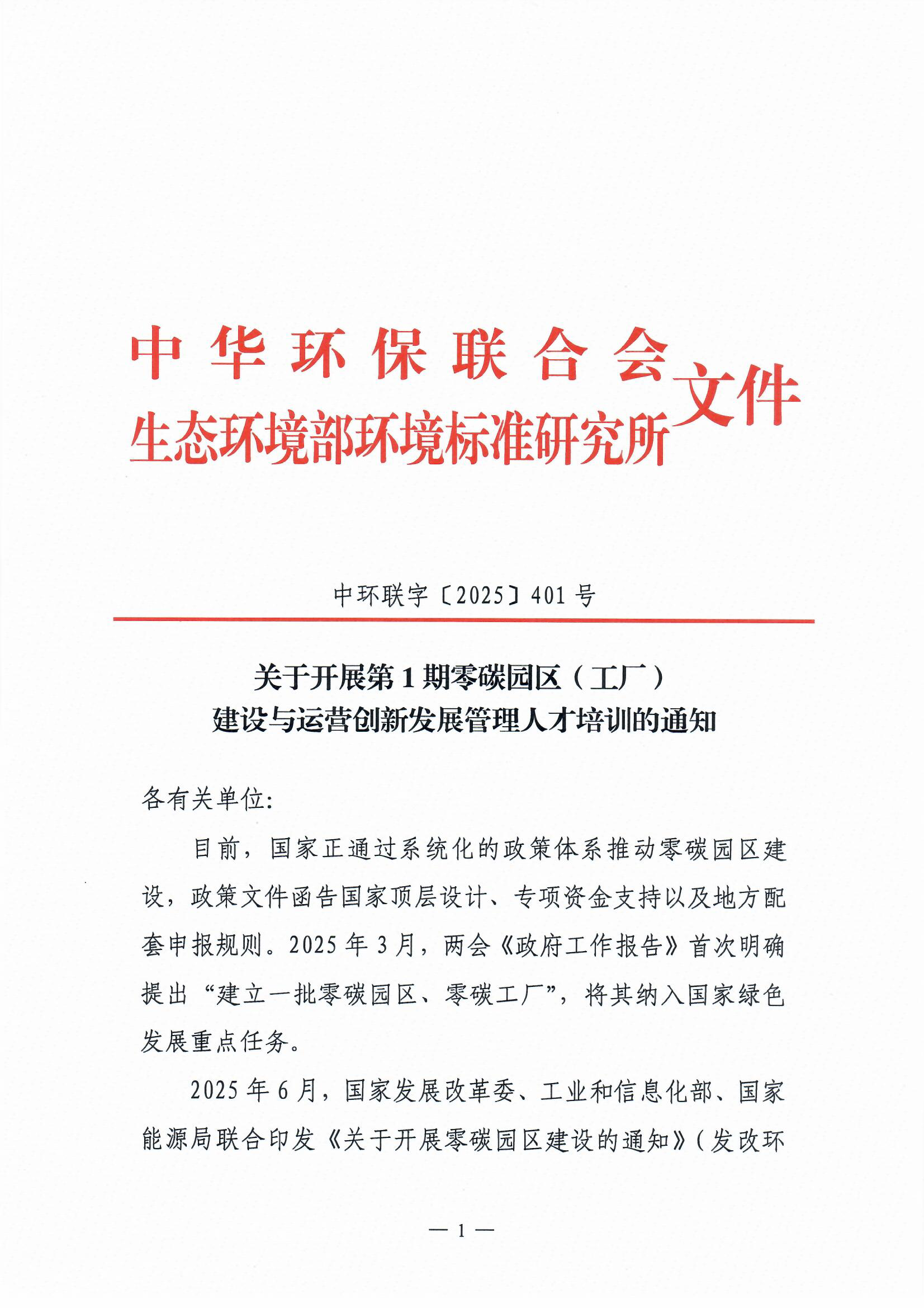 关于开展第1期零碳园区(工厂)建设与运营创新发展管理人才培训的通知