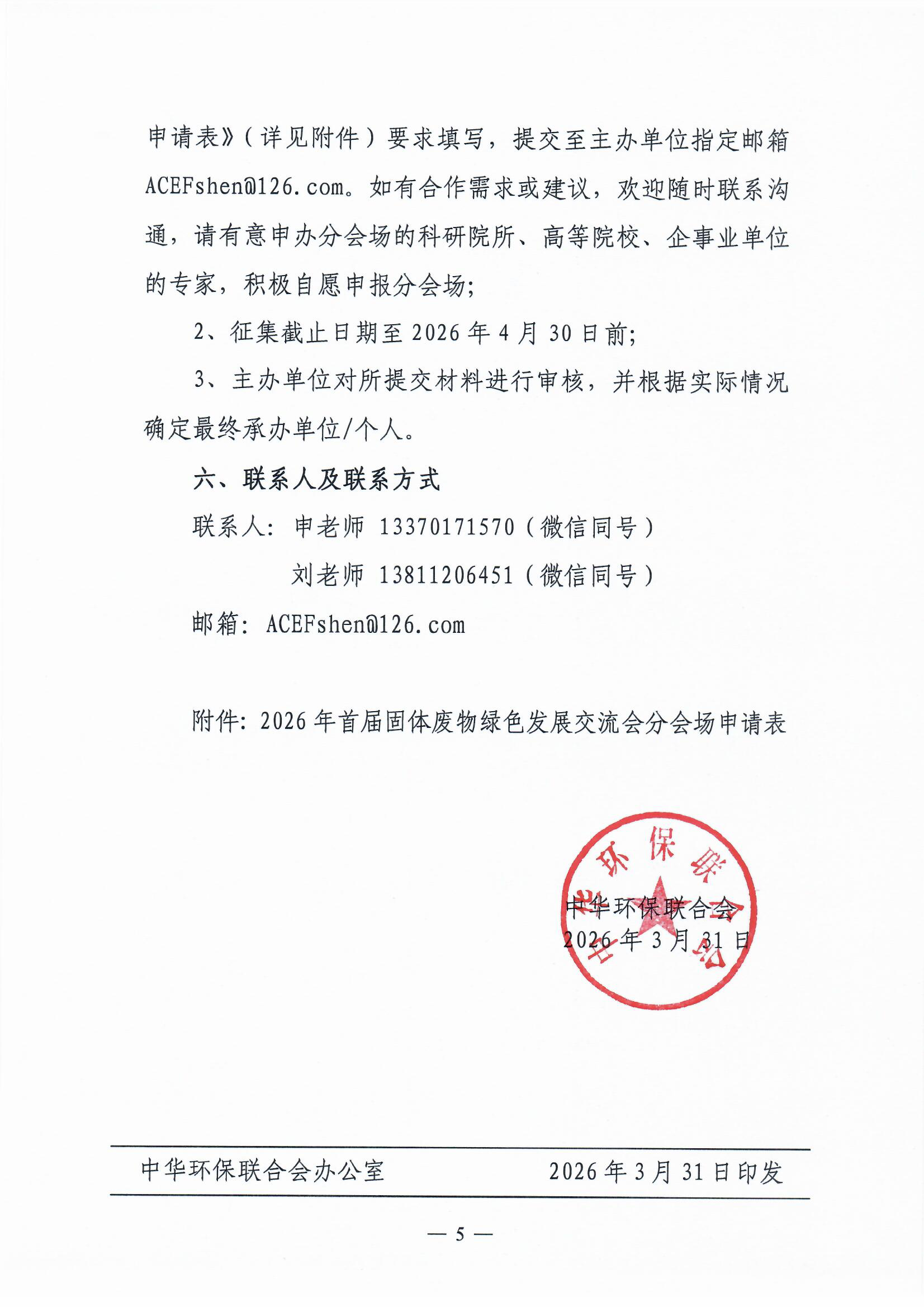 关于征集2026年首届固体废物绿色发展交流会分会场承办单位的通知