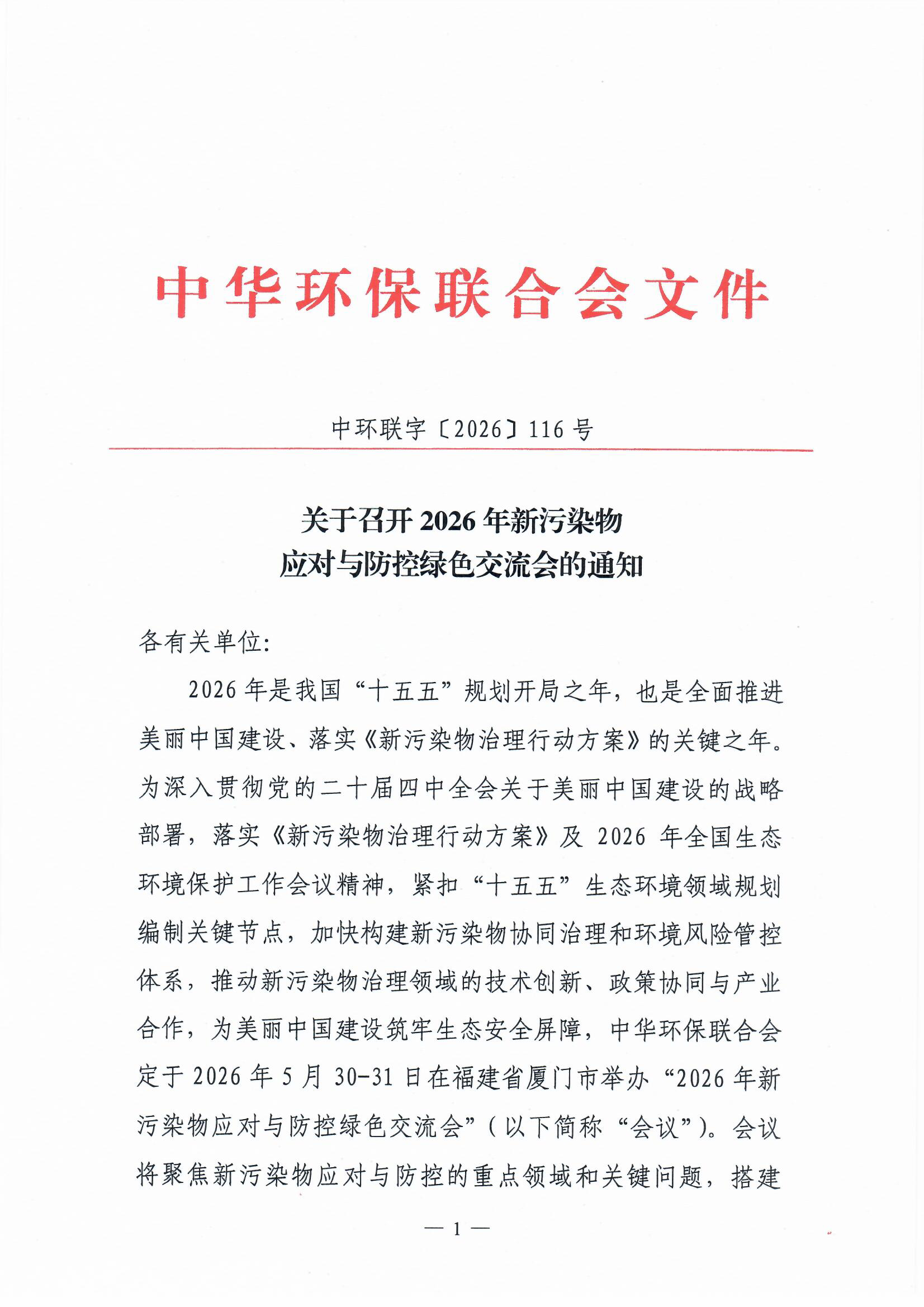 关于召开2026年新污染物应对与防控绿色交流会的通知