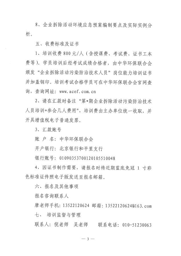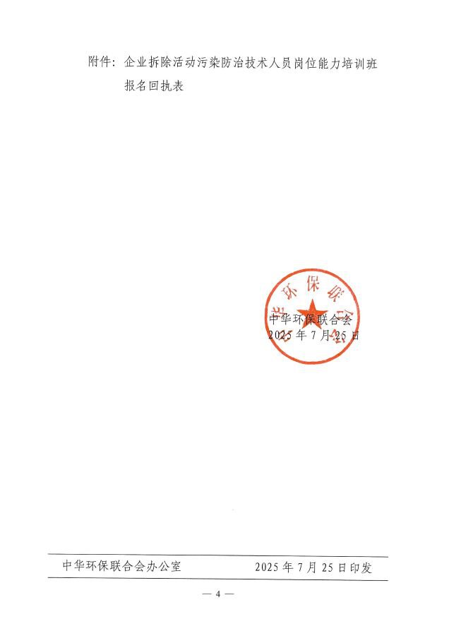关于举办企业拆除活动污染防治技术人员岗位能力培训班的通知