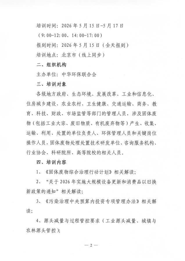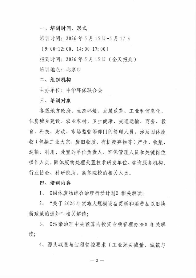 关于举办第2期“固体废物综合治理行
