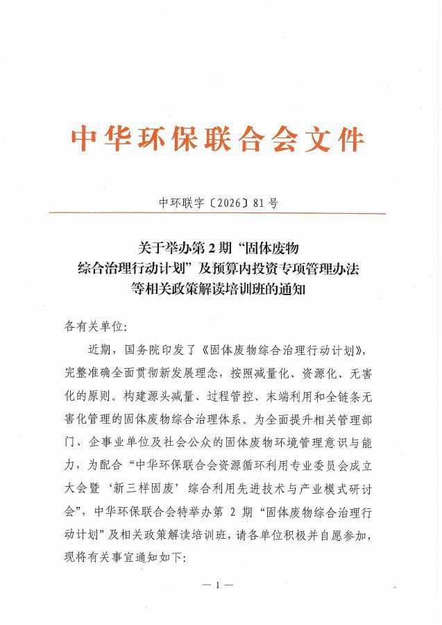 关于举办第2期“固体废物综合治理行动计划”及预算内投资专项管理办法等相关政策解读网络培训班的通知