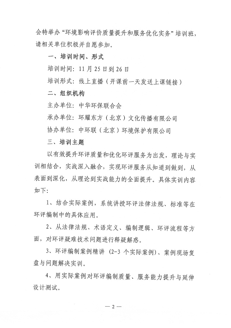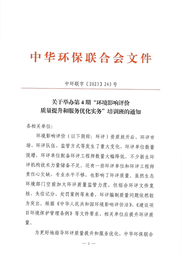 关于举办第4期“环境影响评价质量提升和服务优化实务”培训班的通知