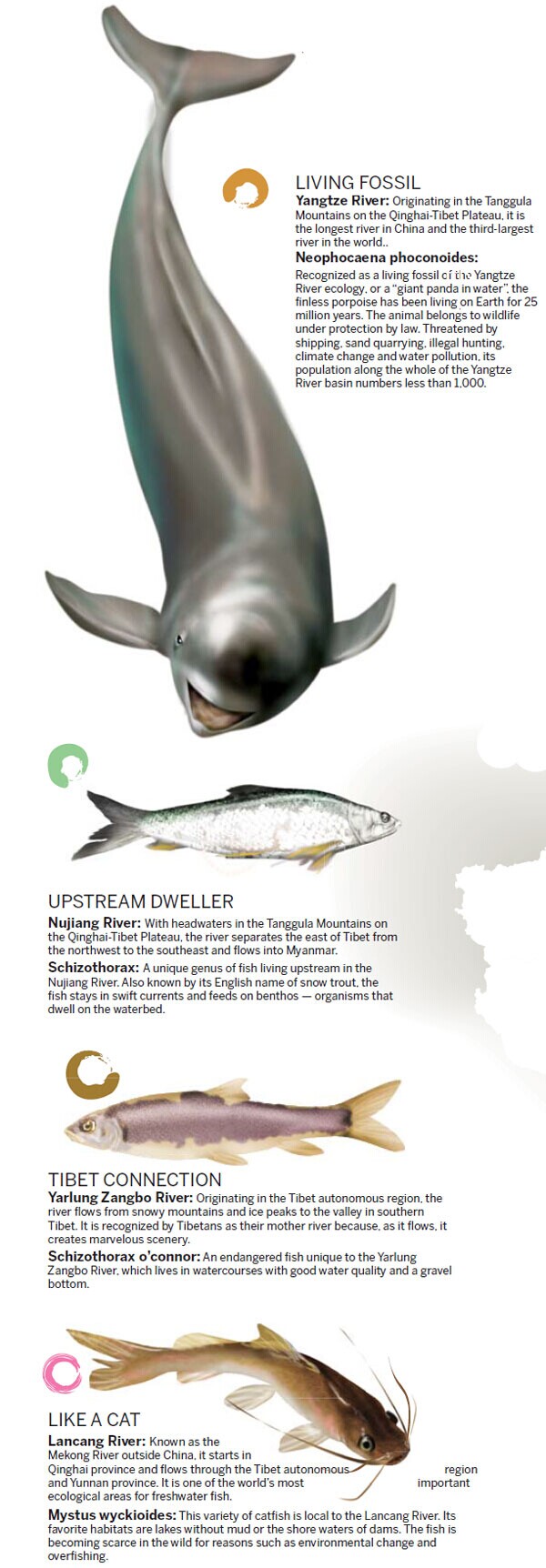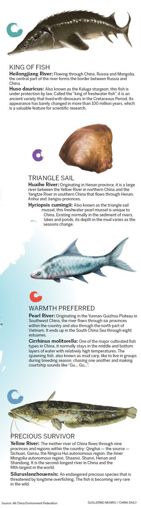 Mini-posters draw attention to 10 of China's aquatic animal species and habitats that are endangered by human activity Ten aquatic animals, each representing a river, have been chosen by environmental experts - with help from the public - to raise awareness of endangered creatures and their habitats. Officials from the Environmental Protection Ministry, the Agriculture Ministry and the Water Resources Ministry put the 10 animals on cards, each of which serves as a sort of mini-poster representing endangered life in one of the country's major rivers. ![]() ![]() ![]() |