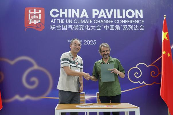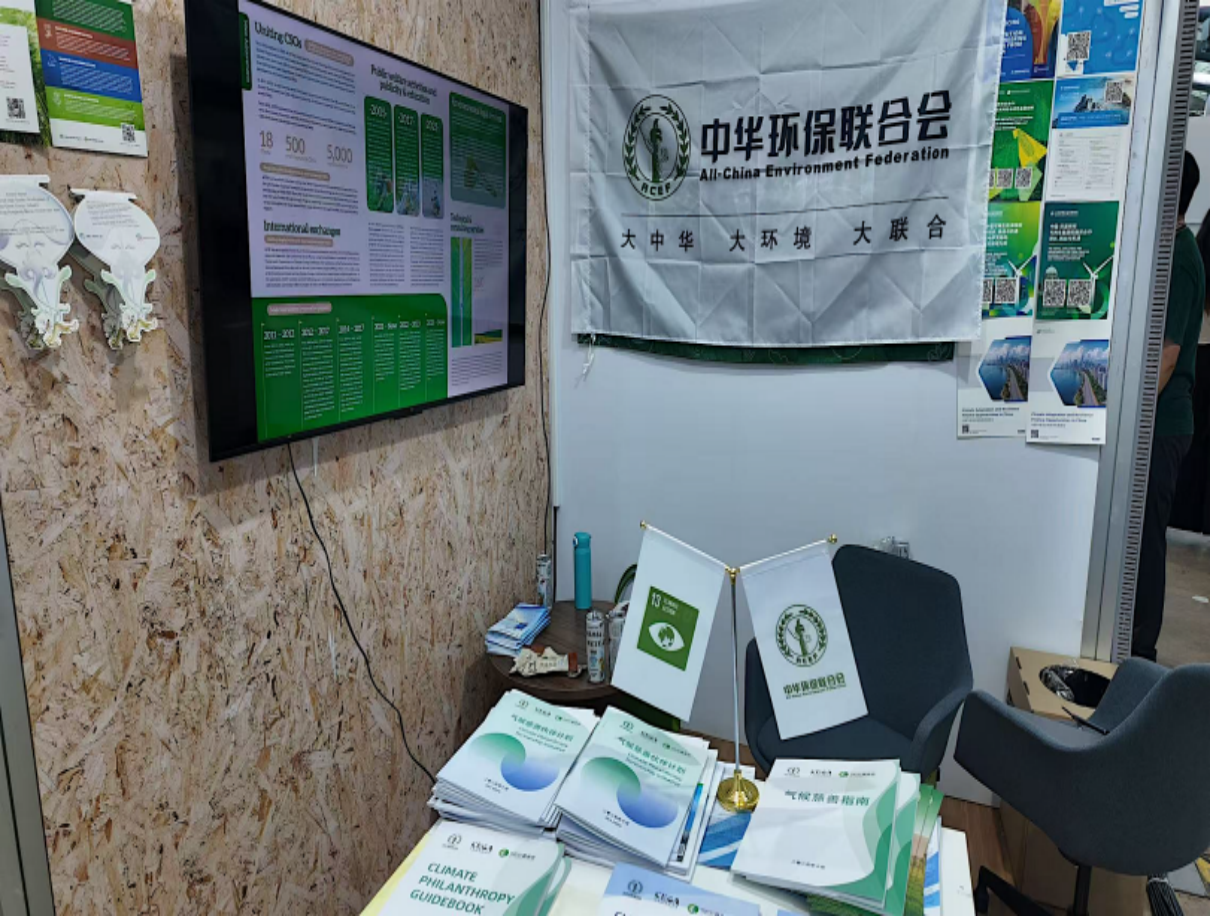 November 19 China Pavilion Side Event: “Corporate Multi-Stakeholder Collaboration and Just Transition toward Net-Zero” On November 19, ACEF, the China Enterprise Confederation, and the China Enterprise Management Science Foundation co-hosted the China Pavilion side event “Corporate Multi-Stakeholder Collaboration and Just Transition toward Net-Zero”. Participants discussed corporate responsibility, international cooperation, and pathways toward just and inclusive green transitions, while releasing a series of Chinese green practice outcomes. Zhang Ruiying, Executive Director of the China Environmental Grantmakers Alliance (CEGA), introduced the Climate Philanthropy Partnership Program launched in August 2024 and released two key reports: Climate Philanthropy Partnership Action Plan 2030 and Climate Philanthropy Guidelines. Ni Yao, Director of ACEF’s Strategic Cooperation Department, and André Loubet Guimarães, Executive Director of IPAM, signed a Memorandum of Understanding, outlining five-year cooperation goals in knowledge sharing, personnel exchanges, and joint international activities. ![]() ![]() Figure 10. Report Release Figure 11. MoU Signing Ceremony November 17–20 Official Thematic Exhibition During the second week of COP30, ACEF and the Beijing Green Research Public Welfare Development Center jointly hosted a week-long exhibition in the official exhibition area. Government officials, international organizations, researchers, and business leaders from Asia, Europe, Africa, and the Americas visited and exchanged ideas. Exhibition highlights included Chinese civil climate governance cases, the Climate Philanthropy Action Plan 2030, the Low-Carbon Strategic Communication Micro-Grant Program, Green Belt and Road practice case collections, and State Grid’s Green Ark Project. Through physical displays, videos, and reports, the exhibition provided a vivid overview of China’s civil climate actions and fostered mutual understanding and consensus. Selected content was also showcased at the China Pavilion. ![]() ![]()