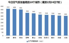 人民网北京2月24日电(杨翼)根据环保部公布的最新数据,截至今天早上7时,阳泉的AQI(空气质量指数)达到413,属于六级严重污染,成为161个参与空气质量排名...