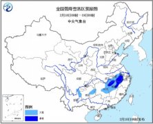 中国气象网讯 中央气象台2月18日06时继续发布暴雪蓝色预警。预计,18日08时至19日08时,安徽中南部、湖北东部、湖南东北部、江西中北部、浙江西北部、云南东...