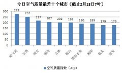 人民网北京2月18日电(蒋琪)根据环保部公布的最新数据,截至今天早上7时,哈尔滨的AQI(空气质量指数)达到277,属于重度污染,成为161个参与空气质量排名的...