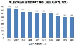 人民网北京1月27日电(杨翼)根据环保部公布的最新数据,截至今天早上7时,荆州的AQI(空气质量指数)达到423,属于六级严重污染,成为161个参与空气质量排名...