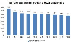 人民网北京1月26日电(蒋琪)根据环保部公布的最新数据,截至今天早上7时,武汉的AQI(空气质量指数)达到375,属于六级严重污染,成为161个参与空气质量排名...
