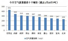 人民网北京1月23日电(蒋琪)根据环保部公布的最新数据,截至今天早上7时,石家庄的AQI(空气质量指数)达到431,属于六级严重污染,成为161个参与空气质量排...