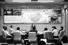 ▲指挥部领导正通过信息化屏幕指导前方开展工作▼海上自动监测站广西环境监管与预警信息系统大平台,上联环境保护部、下联直属单位与14个市局,业务覆盖、信息整合了“五...