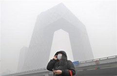 2013年1月29日,东三环光华桥下,央视大楼在大雾中隐隐约约。今年,北京将调整部分大额专项资金,拿出12.5亿元用于备受关注的大气污染治理。记者陈杰摄新京报讯...