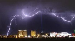美国内华达州拉斯维加斯市上空划过一道闪电。(自路透社)路透社报道,美国加州大学的科研人员日前在《科学》杂志发表研究称,全球气温升高将导致极端天气更加频繁,或让美...