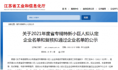 近日,江苏省工业和信息化厅公示相关企业入围2021年度江苏省专精特新小巨人拟认定企业名单和复核拟通过企业名单,我会理事单位凌志环保股份有限公司入围2021年度江...