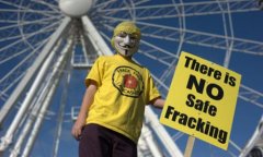 一位参加英国曼彻斯特反水压裂开采活动的抗议人士。(自《卫报》)《自然》杂志最新刊发一篇分析报告显示,世界各国大面积采用水压裂技术开采页岩气将无助于治理全球变暖问...