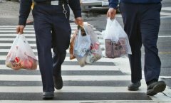 图片说明:旧金山,两位提着几大塑料袋食品的消防员,摄于2005年1月26日。8月29日,加州对外宣布了塑料袋使用禁令。如该禁令正式写入法律,加州将成为美国首个全...