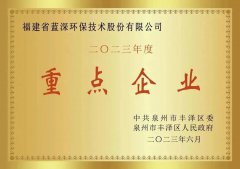 福建蓝深环保获丰泽区重点企业称号 近日,中共泉州市丰泽区委、泉州市丰泽区人民政府发布关于确认2023年度区级重点企业的通知,福建蓝深环保喜获2023年度丰泽区重...
