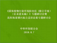 8月7日,中华环保联合会组织召开了《固体废物污染环境防治法(修订草案)(征求意见稿)》(以下简称《草案》)专题研讨会暨沈阳祝家镇污泥公益诉讼案专题研讨会,邀请生...