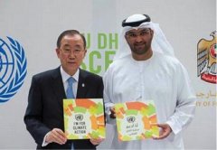 2014年5月4日,阿联酋在阿布达比酋长国召开高级别会议,进一步推广9月23日的联合国气候变化峰会。在记者招待会上,联合国秘书长潘基文(左)与阿联酋气候变化问题...