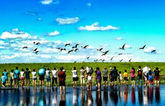 黑龙江省齐齐哈尔市劳动湖畔,柳枝婆娑倒垂在岸边,不时有鱼儿跃出水面,成群的鸟儿扑打着白色翅膀,时而俯冲觅食,时而鸣叫翱翔,在湛蓝的天空映衬下显得格外生机勃勃。 ...