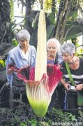 游客们在仔细地观看巨花魔芋的花朵。中新网7月2日电据新加坡《联合早报》7月2日报道,日前,2000多名好奇的游客在法国南特市植物园排起长龙,希望观看巨花魔芋开花...