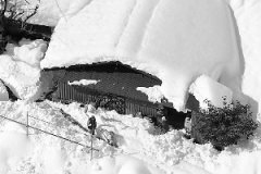 2月17日,在日本山梨县早川町,人们在房屋前清扫积雪。暴风雪连日袭击日本大片地区。截至17日,暴雪引发的事故已造成19人死亡,超过1600人受伤。新华社/法新...