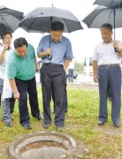 强调要对事故废水严防死守,加快推进核心区内事故废水处置,做好土壤污染风险防控工作 图为环境保护部部长陈吉宁冒雨查看事故核心区市政管网水井截堵废水情况,并要求严防...