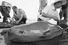 2014年11月26日,江西九江,一条长约一米五的死亡并风化的黑色江豚躺在退水的鄱阳湖沙滩上。CFP供图 于道平最怕接到渔政局的电话。这位安庆师范学院生命科学系...