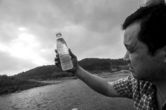 张学理从湖河中提取了一瓶水,他说眼观很清澈无异样,水质很好,但还要带回去进行检测。朱嘉磊摄 十几年前,在丹江口水库的上游,曾分布着占据中国半壁江山的黄姜生产企业...