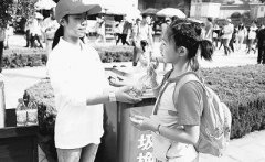 图为10月7日西安市临潼区兵马俑景区外免费换水点,青年志愿者为游客小朋友兑换矿泉水。 今年国庆长假期间,西安市临潼区文明办在兵马俑、华清池、骊山森林公园三大景区...