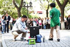 昨日,在北海公园一男子在调节扩音器,一女士手持话筒准备开唱。今年9月15日,北海和景山公园推出“降噪令”。本版图片/新京报记者尹亚飞摄昨日,一市民在北海公园内高...