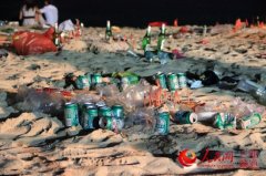 海滩上遍地垃圾 人民网三亚频道9月9日电(蔡东成)9月9日凌晨1时30分,在三亚大东海景区沙滩,中秋夜前来赏月的人群们陆陆续续离开,而赏月的人群兴致勃勃前来借沙...