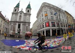 当地时间2015年1月29日,奥地利维也纳,环保人士用800只购物袋在大街上拼成鱼形,抗议塑料制品造成的海洋污染。 当地时间2015年1月29日,奥地利维也纳,...