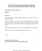 9月28日,毛里求斯共和国第6任总统阿米娜古里布法基姆博士办公室给中华环保联合会发来贺信祝第十四届环境与发展论坛圆满成功。 阿米娜古里布法基姆博士在贺信中指出:...
