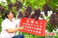 一株红提树起价10万元售卖 易正权 摄 当地市民及客商观赏红提树 易正权 摄 8月31日,在位于湖北省宜昌市夷陵区鸦鹊岭镇的一处红提园内,工人正在给一株“红宝石...