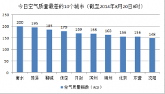 人民网北京8月20日电根据环保部公布的最新数据,截至今日早上8时,衡水的AQI(空气质量指数)为200,属于中度污染,成为161个参与空气质量排名的城市中空气质...