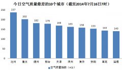 人民网北京7月16日电(杨翼)根据环保部公布的最新数据,截至今日早上7时,沧州的AQI(空气质量指数)为237,属于重度污染,成为161个参与空气质量排名的城市...