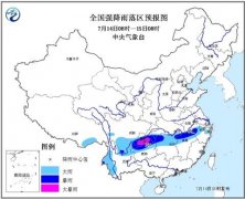 全国强降雨落区预报 中国天气网讯中央气象台7月14日06时继续发布暴雨蓝色预警: 预计,7月14日08时至15日08时,四川南部、重庆南部、贵州北部、湖南北部、...