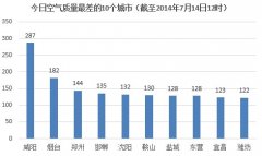 人民网北京7月14日电(记者蒋琪)根据环保部公布的最新数据,截至今天早上7时,咸阳的AQI(空气质量指数)为287,属于严重污染,成为161个参与空气质量排名的...
