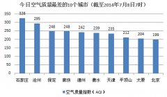人民网北京7月8日电根据环保部公布的最新数据,截至今日早上7时,石家庄的AQI(空气质量指数)为326,属于严重污染,成为161个参与空气质量排名的城市中空气质...