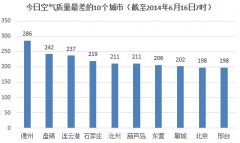 人民网北京6月16日电(蒋琪)根据环保部公布的最新数据,截至今日早上7时,德州的AQI(空气质量指数)为286,属于重度污染,成为161个参与空气质量排名的城市...