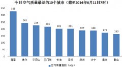 人民网北京6月11日电(杨翼)根据环保部公布的最新数据,截至今日早上7时,菏泽的AQI(空气质量指数)为328,属于严重污染,成为161个参与空气质量排名的城市...