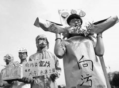 日前,在安徽亳州职业技术学院,大学生们在展示以保护环境为主题的行为艺术。当日,亳州职业技术学院大学生开展以“请不要背叛大自然”为主题的环保宣传活动,以行为艺术的...