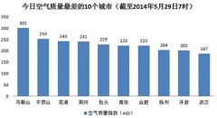 人民网北京5月29日电(蒋琪)根据环保部公布的最新数据,截至今天早上7时,马鞍山的AQI(空气质量指数)为301,属于六级严重污染,成为161个参与空气质量排名...