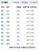 图片来源:中国天气网人民网北京5月29日电(蒋琪)根据中国天气网公布的最新数据,截至今天上午11时,全国地方实时气温排行前十名均在河北,并...