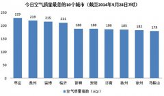 人民网北京5月28日电(蒋琪)根据环保部公布的最新数据,截至今天早上7时,枣庄的AQI(空气质量指数)为229,属于重度污染,成为161个参与空气质量排名的城市...