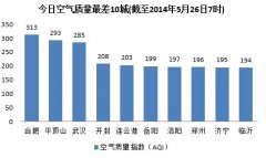 人民网北京5月26日电(蒋琪)根据环保部公布的最新数据,截至今天早上7时,合肥的AQI(空气质量指数)为313,属于六级严重污染,成为161个参与空气质量排名的...