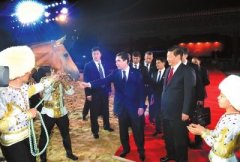 习近平接受别尔德穆哈梅多夫代表土方赠与中方的一匹汗血马。新华社发张骞出使西域归来说“西域多善马,马汗血”,由此两千年来,土库曼斯坦的阿哈尔捷金马一直被中国人称为...