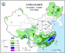 中新网5月14日电中央气象台5月14日06时继续发布暴雨蓝色预警:预计,14日08时至15日08时,广西北部、湖南南部、广东北部和南部沿海地区、江西中南部、浙江...